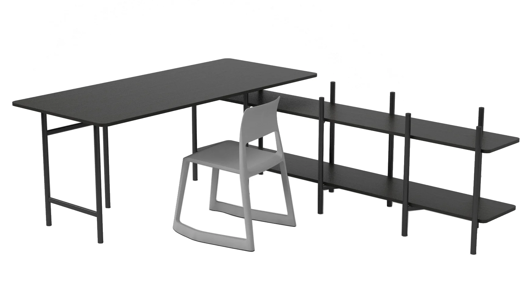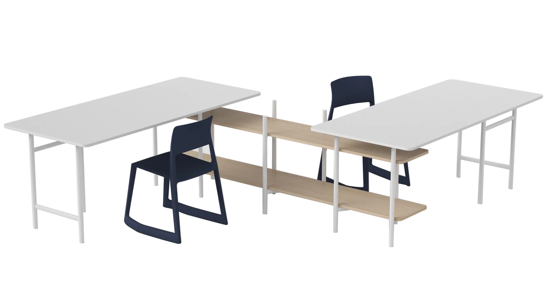 Designers StokkeAustad pondered deeply upon the request and came up with a solution which is not only very simple and elegant: It turns out that the it also carries a lot of extra possibilities, extending into shared workspaces, shelving and beyond.